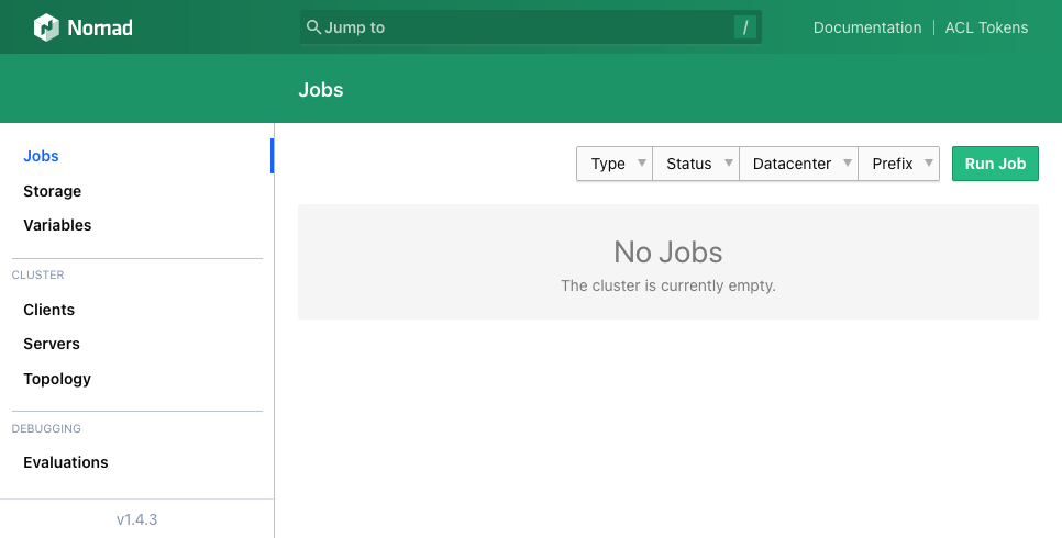 Open the Nomad web interface from one of the server nodes, as described in the previous section.